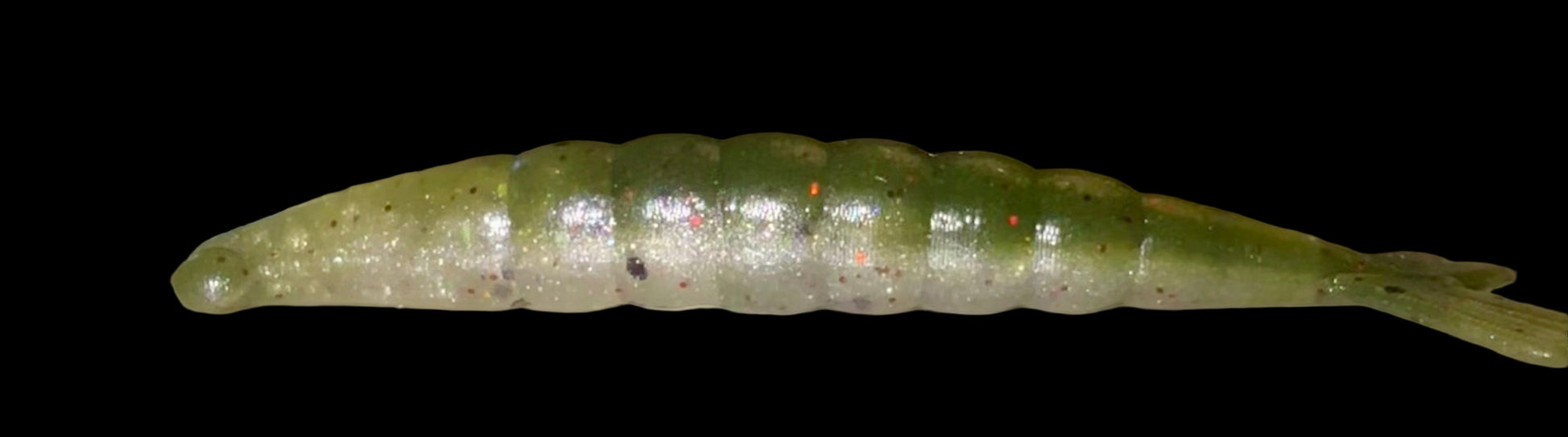 The THUMPERSHIMP is designed with aerodynamics in mind, featuring the signature ribbed texture, eyes, and a forked fan tail. By removing the legs and antennae, we created a streamlined, gliding imitation that mimics the natural movement of shrimp in current. Through extensive research, we observed how shrimp hover and glide forward while swimming slowly, which inspired the creation of our ball-head and shrimp combo. This design allows the bait to glide through strike zones with ease, providing a natural, non-fleeing presentation that draws in fish.